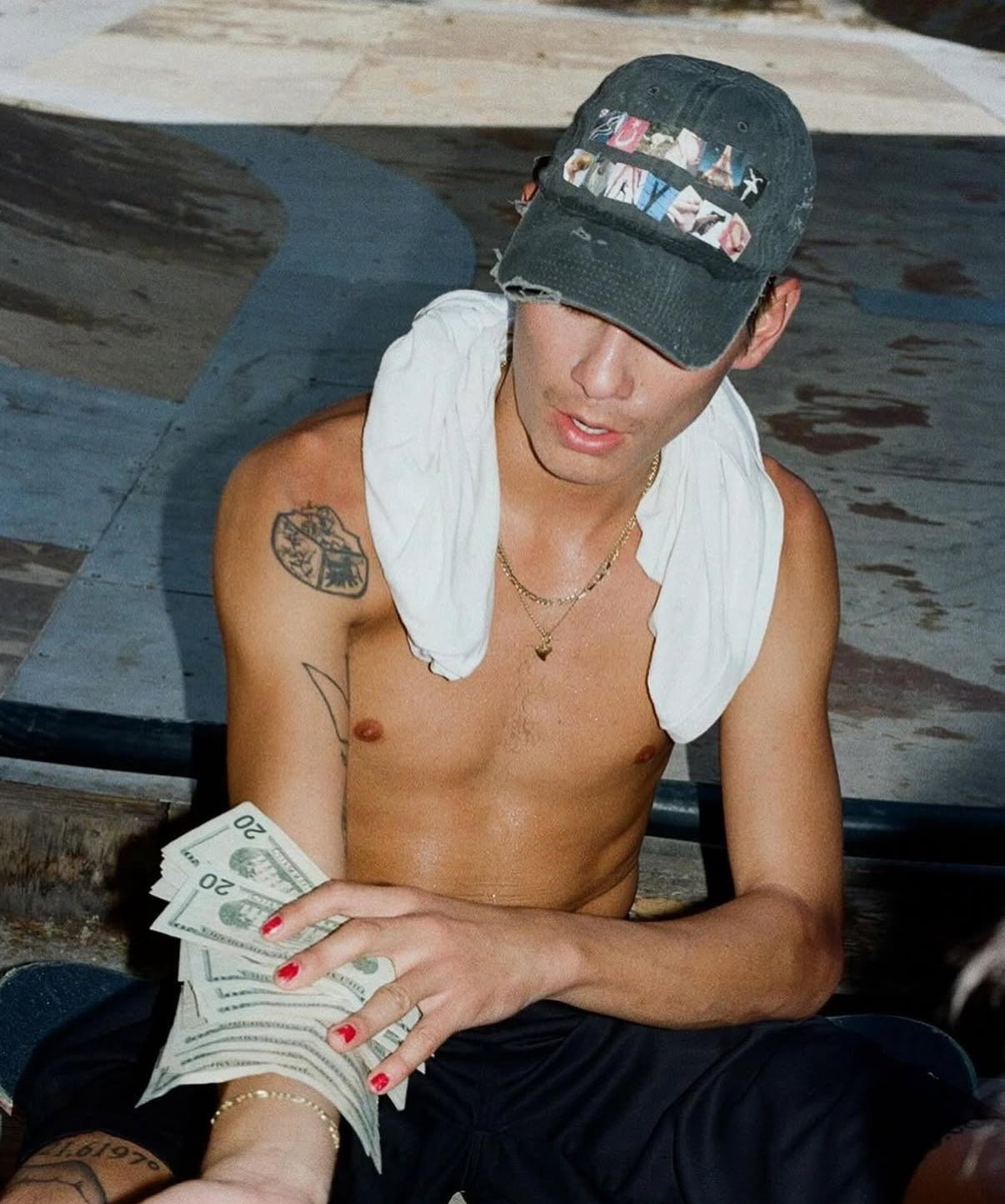 - HAND APPLIED HEAT TRANSFERRED PHOTOS THAT SPELL OUT “SUNDAY PRAYERS” WITH SIGNATURE PINK DUCT TAPE APPLIED TO BACK.